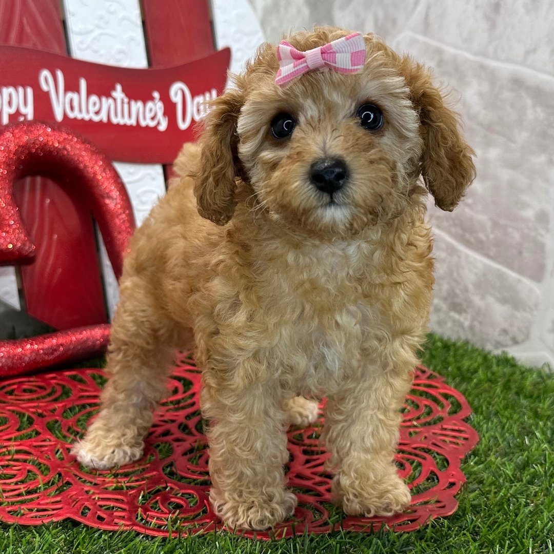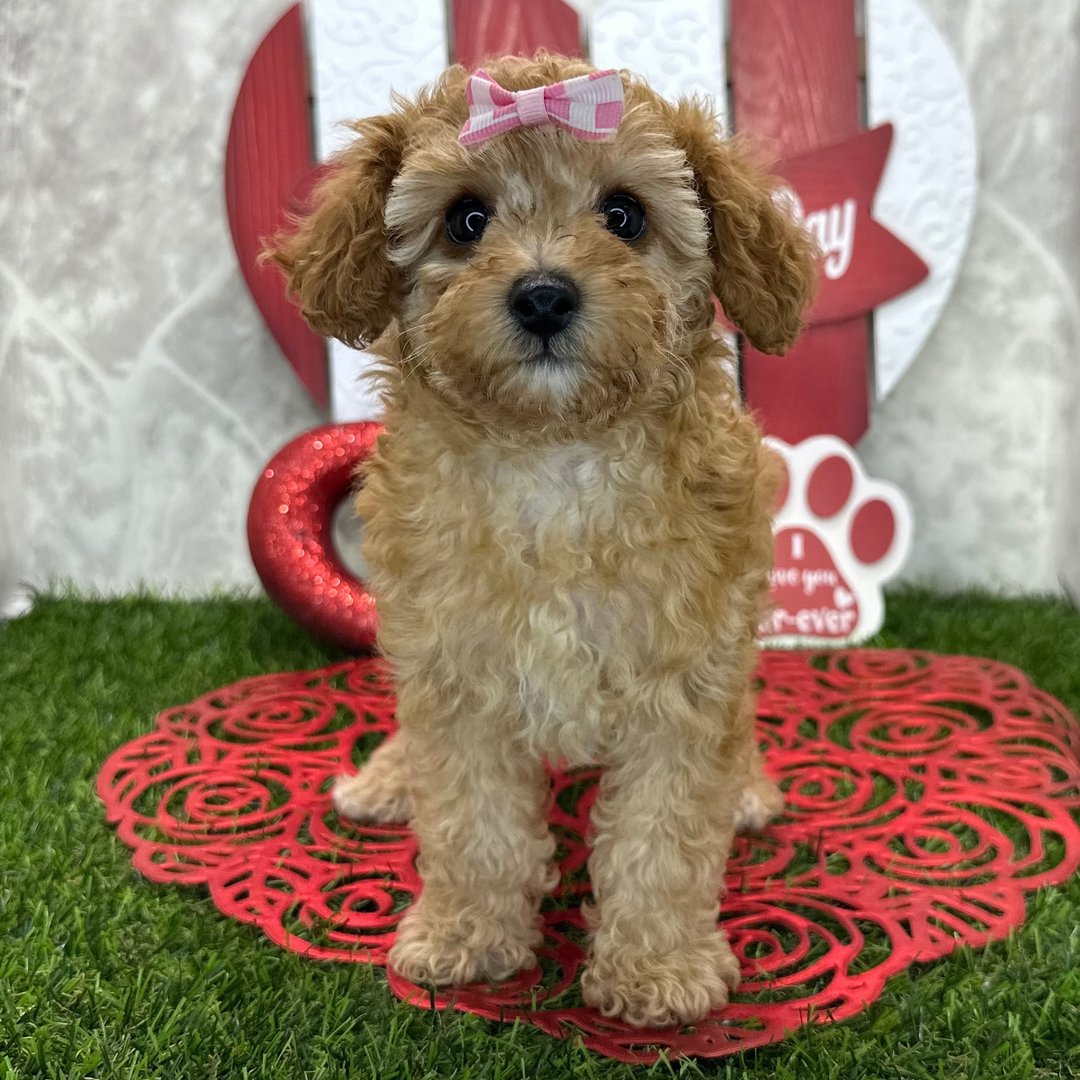 Hi, I’m Karma! I’m a 9-week-old female Poodle with a stunning red coat and a playful, affectionate personality. I was born on November 23 and raised with love in a caring, hands-on environment that focuses on early socialization and confidence building.